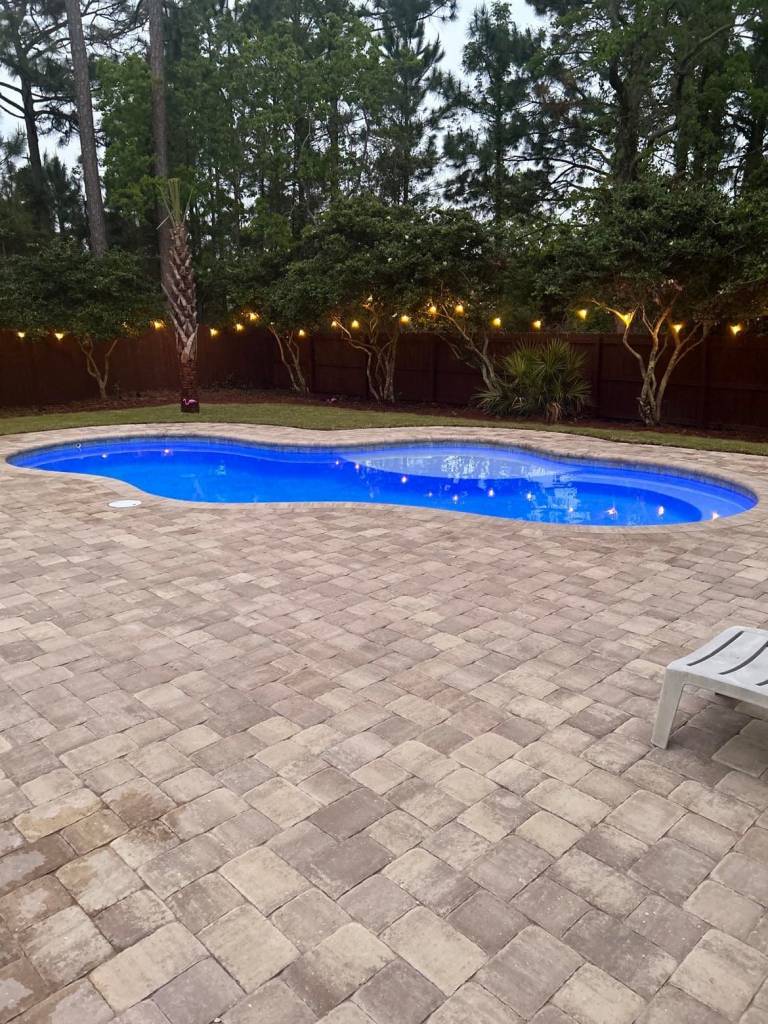 – *NEW* saltwater pool surrounded by palm trees and privacy fence